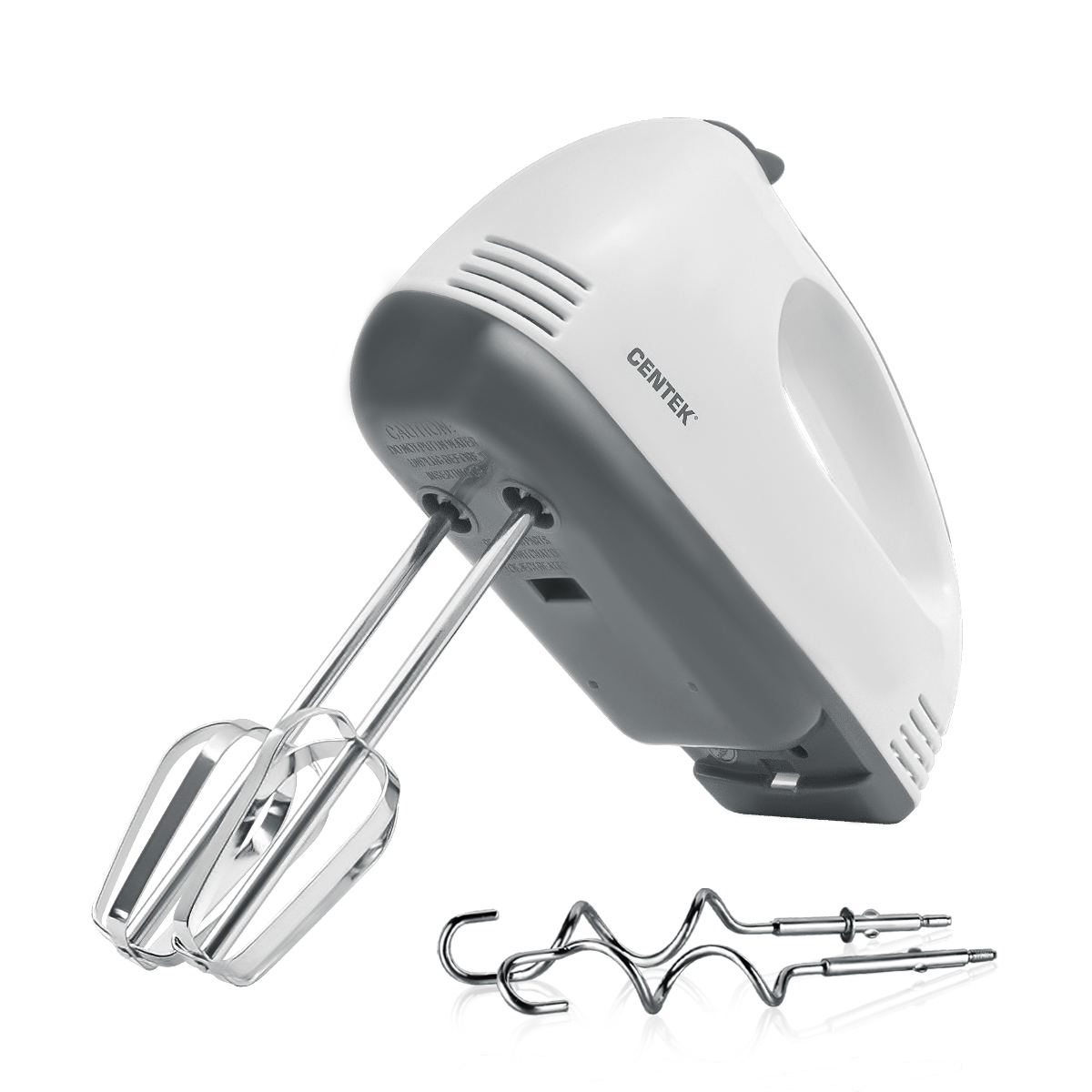 Миксер Centek CT-1111 – многофункциональное устройство и незаменимый помощник на современной кухне! Мотор миксера мощностью в 200 Вт позволяет насадкам вращаться с разной скоростью. Вы можете установить один из семи режимов скорости с помощью удобного переключателя на корпусе прибора. Две пары сменных насадок обеспечат быстроту и качество взбивания теста, крема, соуса или фарша. Установите насадки-венчики, чтобы взбить яичные белки, муссы и другие жидкие ингредиенты. Насадка-крюк отлично подойдет для замешивания фарша, дрожжевого и другого крутого теста. Смена насадок происходит очень легко. Они отсоединяются простым нажатием на кнопку. Все насадки хромированные, что обеспечивает их длительную эксплуатацию. Нескользящую ручку эргономичной формы удобно держать в ладони, что обеспечивает комфортное использование прибора.