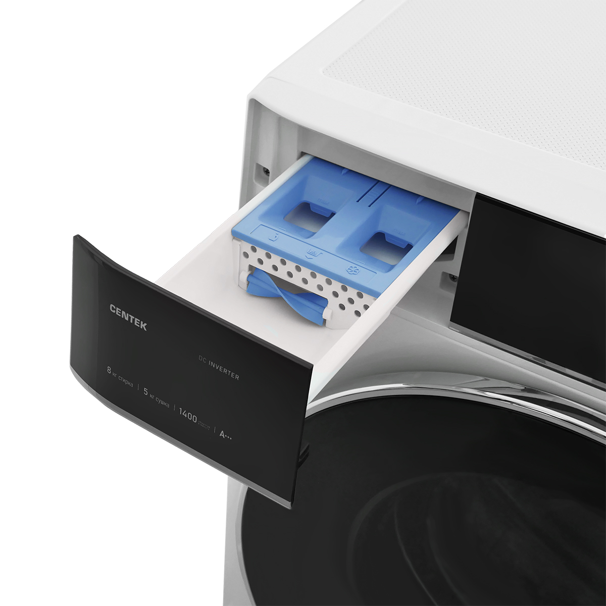 CENTEK СТ-1944 с сушкой экономит место, время и средства. Благодаря сенсорному управлению и информативному LED-дисплею управлять машиной можно в одно касание. Двигатель обеспечивает бесшумную работу, высокую энергоэффективность А+++, и мощность 2000 Вт.