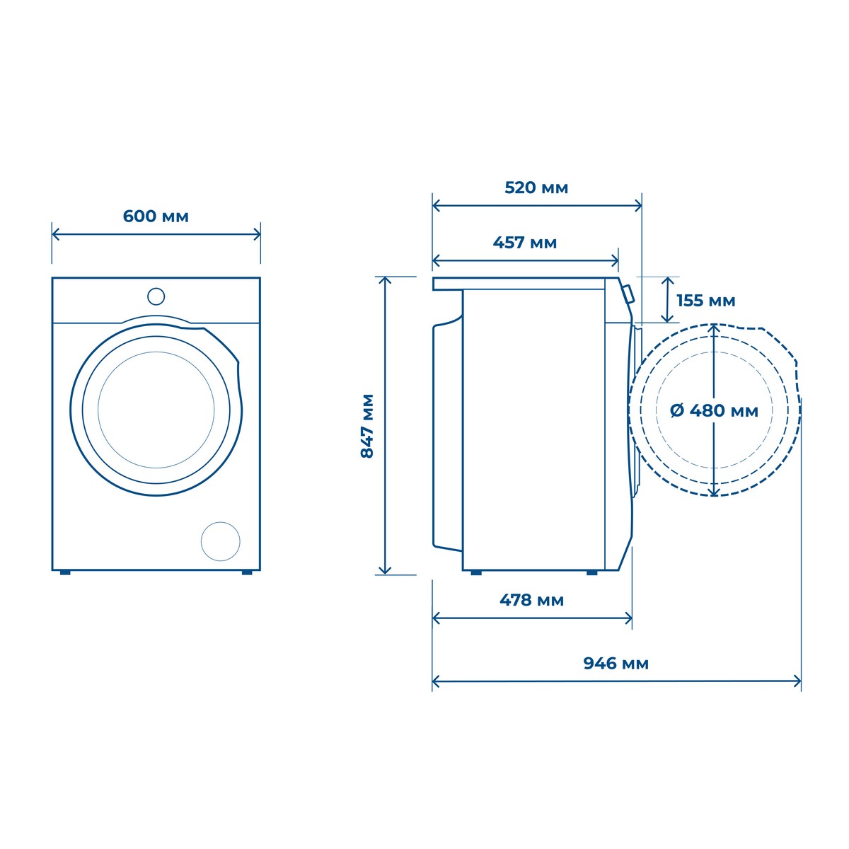 | Режимы | Smart, Автоматическая балансировка белья, Без звука, Блокировка от детей, Догрузка белья, Мое время, Отсрочка старта, Очистка барабана |